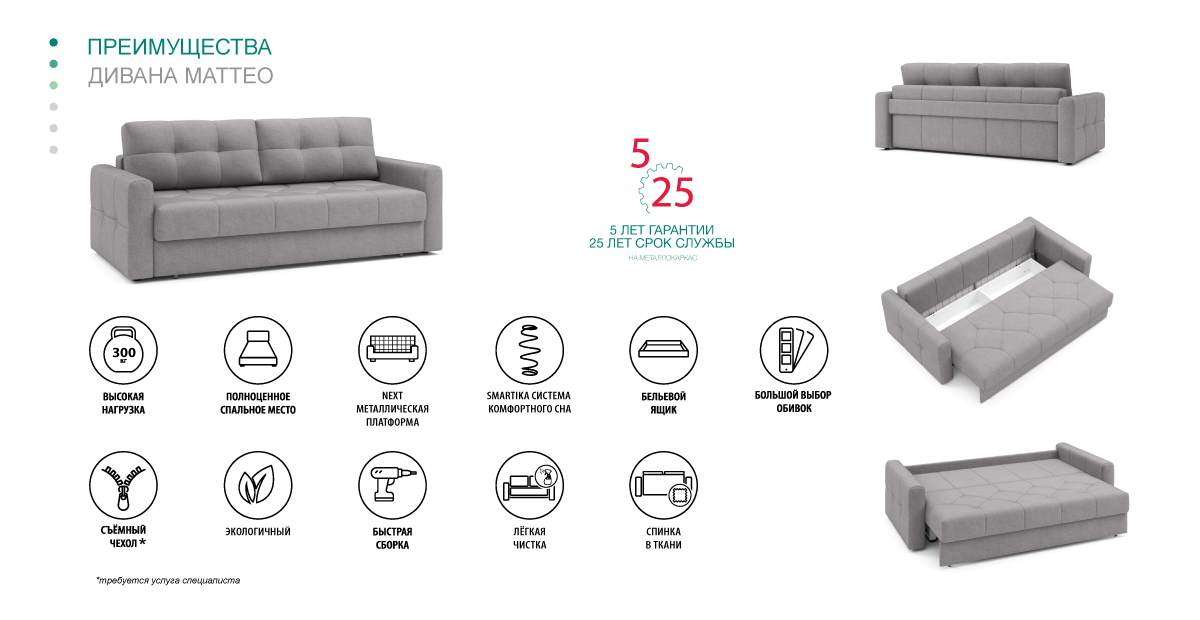 Мягкая мебель, кровати мягкие и малые формы (столики журнальные и придиванные, стеллажи «ЛУКАС»), собираются в день доставки.