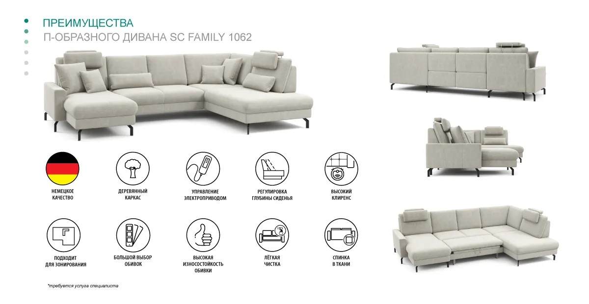 П-образный диван SC Family 1062, арт. 10435656 (Спб)